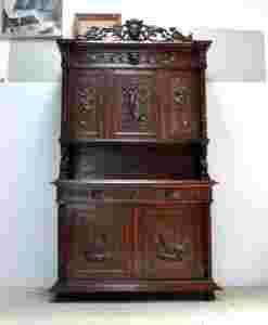 Zapraszam do zakupu starego i irginalnego kredensu myśliwskiego. Powstał on podkoniec XIX wieku i wykonany jest z drewna dębowego. Jest to mebel dwuczęściowy składający się z dołu oraz nadstawki. Nadstawka wsparta na ściance tylnej oraz dwóch wukonanych z litego dębu gryfach. Całość dekorowana pięknymi myśliwskimi rzeźbami. Stan bardzo dobry po renowacji. Mebel prezentuje się bardzo okazale i majestatycznie. Transport na terenie całego kraju do uzgodnienia.