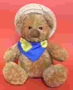 Przedmiotem aukcji jest prześliczna urocza maskotka miś w słomkowym kapeluszu. Wysoka jakość wykonania. Miś jest przepiękny, bardzo sympatyczny, ma uroczą mordkę i czarne błyszczące oczy.