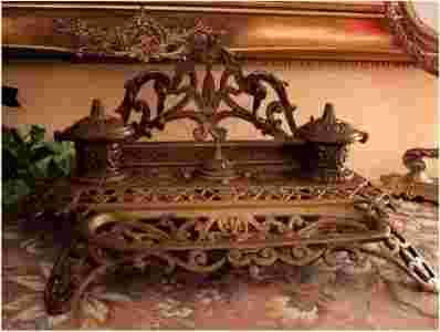 Polecam oryginalny stary kałamarz z listownikiem na biurko w stylu secesji. Piękny styl, charakteryzujący się bogactwem zdobień. Przedmiot bez uszkodzeń. Wiele uwagi poświęca się dekoracji wnętrz - jeśli preferujesz styl secesji to dobrze trafiłeś. Przedmiot bez uszkodzeń, - Polecamy !!!. Wspaniały ekskluzywny przedmiot na biurko, całość sygnowana z wkładem specjalnym na pióro - Polecamy...