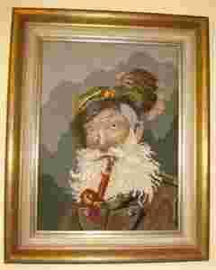 STARY OBRAZ HAFTOWANY GÓRAL ALPEJSKI W RAMIE RETRO