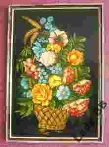 Stary obraz kwiaty w koszu - akryl