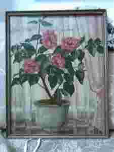 STARY OBRAZ W RAMACH KAMELIE PRZY OKNIE SYGN. OLEJ