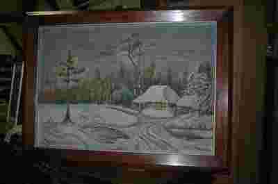 Stary obraz w ramie dębowej