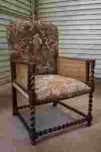 STARY ORGINALNY FRANCUSKI FOTEL DĘBOWY MAT GOBELIN