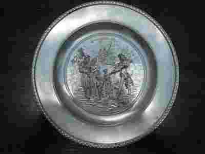 Stary pięknie wykonany talerz z cyny