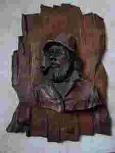 STARY PIĘKNY WIESZAK DREWNIANY Z RYBAKIEM