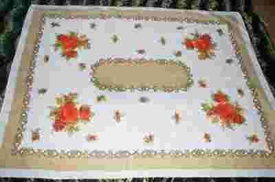 STARY POLSKI OBRUS W RÓŻE LEN ŻYRARDÓW