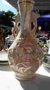 Stary porcelanowy wazon w odcieniach żółtego