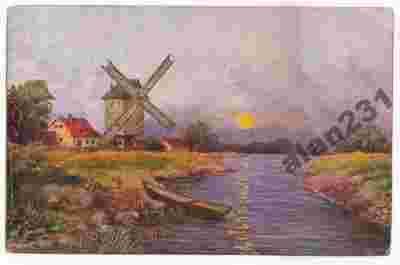 Stary wiatrak o zachodzie słońca