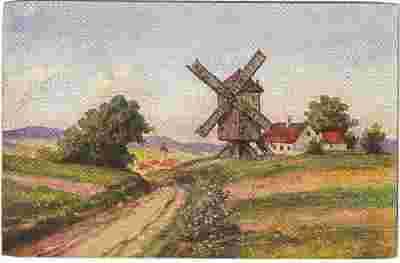 Stary wiatrak przy drodze,motyw wiejski
