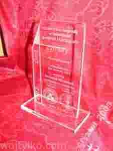 Statuetka wykonana zostanie ze szkła płaskiego 10mm ręcznie szlifowanego oraz grawerowanego.