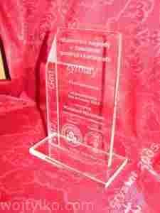 Statuetka wykonana zostanie ze szkła płaskiego 10mm ręcznie szlifowanego oraz grawerowanego.