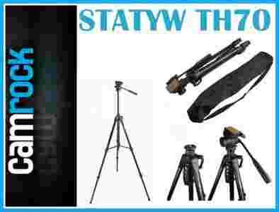 Camrock TH70 to uniwersalny, wysoki statyw z komfortową głowicą 3D. Głowica jest wymienna, a na statywie można