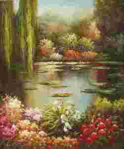 Dużej urody impresjonistyczny pejzaż malowany farbami olejnymi na płótnie.