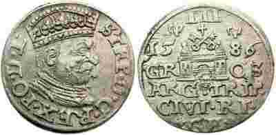 Stefan Batory, trojak 1586, Ryga - ładny - R