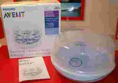 Sterylizator mikrofalowy Philips AVENT został dostosowany do większości mikrofalówek dostępnych na rynku. Jego wymiary to: 166 (wys.), 280 (szer.), 280 (dł.) mm. Wyposażony jest w boczne zaciski, które stanowią dodatkowe zabezpieczenie. Zaciski szczelnie zamykają pokrywkę, uniemożliwiając wydostawanie się gorącej wody podczas wyjmowania sterylizatora z mikrofalówki. Boczne uchwyty nie nagrzewają się, aby zapewnić bezpieczną obsługę sterylizatora. Mimo niewielkich rozmiarów jest to jedyny sterylizator mikrofalowy, który może pomieścić aż do 6 butelek Philips AVENT. Jest on także dostosowany do sterylizacji laktatorów ręcznych. Sterylizator Philips AVENT oparty jest na metodzie sterylizacji parowej, która jest szybka, łatwa i ekonomiczna, ponieważ w jej trakcie nie są wykorzystywane żadne środki chemiczne.