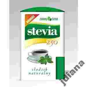 Stevia tabletki Zielony Listek to słodzik naturalnego pochodzenia, na bazie wyciągu ze stewii (Stevia rebaudiana), rośliny o wyjątkowo słodkich liściach. Naturalne glikozydy stewiolowe to główny składnik odpowiedzialny za bardzo słodki smak słodziku. Glikozydy te mają zero kalorii, są w pełni naturalną i bezpieczną substancja słodzącą. Są 250-450 razy słodsze od cukru (sacharozy), ale nie podnoszą poziomu cukru we krwi, przez co są doskonałą alternatywą dla diabetyków.