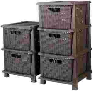 STOJAK 3 SZUFLADY BRĄZ EFEKT RATTANU