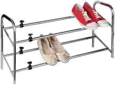STOJAK NA OBUWIE 2 PÓŁKI CHROM SREBRNY