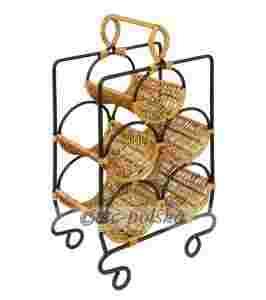 Stojak na wino z metalu i wikliny GF099