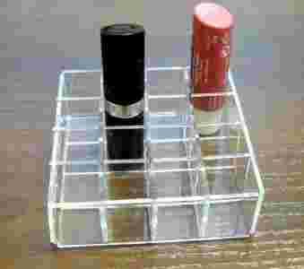 Przedmiotem aukcji jest stojak/organizer na pomadki wykonany z przeźroczystej plexi o grubości 2mm.