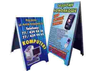 Przedmiotem aukcji jest wykonanie dwustronnego stojaka reklamowego (”potykacz”)