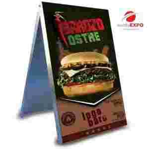 Kupujesz estetyczny i nowoczesny potykacz reklamowy. Wykonany z najwyższej jakości blachy aluminio-cynkowej. Sztywność potykacza zapewniają krawędziowane na profesjonalnych maszynach boki poszczególnych plansz. Grafika może być stała lub wymienna. Potykacz jest bardzo stabilny, posiada regulację nachylenia. Przystosowany do długotrwałej ekspozycji w warunkach zewnętrznych.