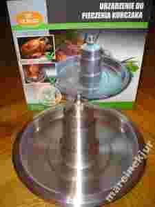 Urządzenie do pieczenia kurczaka i innego drobiu w tym wykonaniu jest nowością w naszych kuchniach. Umożliwia umieszczenie kurczaka na specjalnym stojaku w stabilnej pozycji i wstawienie na grill, do piekarnika z termo obiegiem lub pionowego obrotowego rożna. Cały wytopiony tłuszcz zbierze się w podstawce, a w odróżnieniu od bardziej rozpowszechnionego modelu z ceramiki, szkła czy drucianego stelaża - istnieje tu możliwość umieszczenia w specjalnym pojemniku wewnątrz kominka aromatycznych przypraw, zmieszanych np. z piwem, które nadadzą kurczakowi niezapomniany aromat.