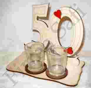 Stojak z dwoma kieliszkami 50 LAT idealny PREZENT