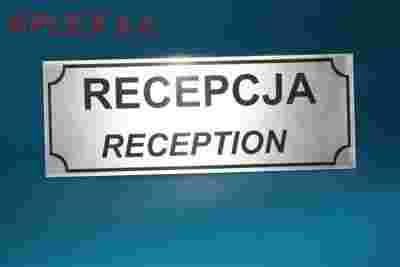 Tekst na tabliczce to Recepcja w jezyku Polskim i Angielskim .