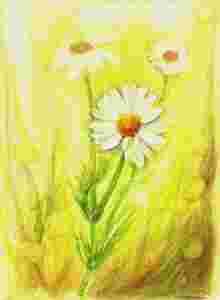 STOKROTKA RUMIANEK KWIATY pejzaż akwarela