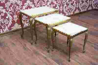 Stoliczki Trojaczki Ludwikowskie Marmur Mosiądz!!!