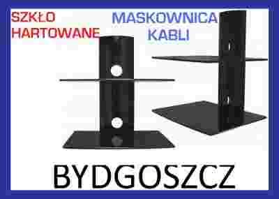 STOLIK ŚCIENNY PÓŁKA RTV HARTOWANE SZKLO + ALUMIN.