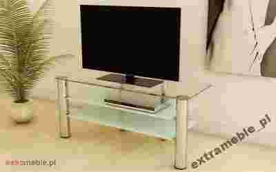 Nowoczesny stolik RTV z chromowanymi nóżkami.