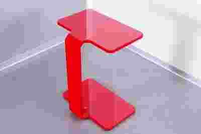 T3 to oryginalny mebel o co najmniej kilku zastosowaniach - idealnie funkcjonuje jako dostawka do kanapy, na przykład pod książkę czy laptopa, podręczny stolik kawowy lub stolik nocny. Lekki, a zarazem stabilny, dzięki swojej poręczności może spełniać różne funkcje w jednym pomieszczeniu, w zależności od potrzeby. Wykonany z lakierowanego na czerwono mdf'u, stanowić będzie ładny element dekoracyjny wielu wnętrz. Mebel dostarczany w wersji całkowicie zmontowanej, nie wymaga skręcania.