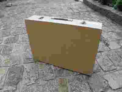 Skrzynka ze złożonym stolikiem ma wymiary 60 cm X 44 cm.