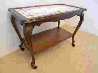 stolik z blatem wykładanym płytkami malowanymi