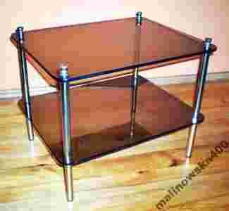 Stolik ze szkła - brąz - z mosiężnymi nóżkam