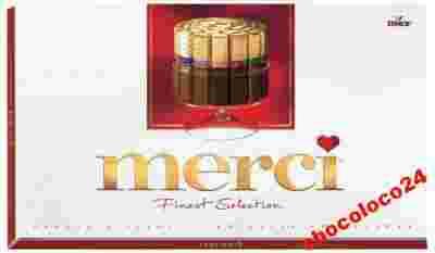 Bombonierka z wyśmienitymi czekoladkami w ośmiu smakach. Czekoladki merci w czekoladzie mlecznej i deserowej kryją w sobie wspaniałe smaki: śmietankowy, nugatowy, kawowo-śmietankowy, marcepanowy, orzechowo-migdałowy, deserowy, musu czekoladowego i pralinowy