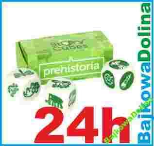 Oto prosta w założeniach i jednocześnie genialna gra, która dostarczy wam masę radości, stanowiąc przy tym doskonały trening pomysłowości i wyobraźni. Story Cubes: Prehistoria to trzy ładnie wykonane, sześcienne kostki, z których każda zawiera na ściankach odmienny zestaw ilustracji. Jest to rozszerzenie do gry Story Cubes. Tym razem posiadają 18 unikalnych ikonek opisujących elementy które kojarzą się z okresem prehistorii, które mogą zostać wykorzystane przy snuciu opowieści.