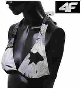 Górna część stroju kąpielowego z kolekcji lato 2012 4f. Wykonana z elastycznego, świetnie dopasowującego się do ciała materiału. Wkładki w biuście modelują jego kształt. Zapewnia wysoki komfort podczas pływania. Idealny dla aktywnych kobiet, ceniących wygodę.