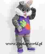 Strój reklamowy - Zając. Składa się z czterech elementów: kombinezonu, butów, rękawiczek i głowy misia. Kostium jest wygodny w noszeniu, gwarantuje dopływ świeżego powietrza i dobrą widoczność. Nakładki na stopy zostały wykonane z wodoodpornego materiału, można je zakładać na bose nogi lub buty. Głowa została uformowana ze specjalnej gąbki i pokryta pluszem. Profesjonalny strój reklamowy w dobrej cenie. Możliwość zamówienia indywidualnej kolorystyki - w przypadku indywidualnych życzeń cena podlega dodatkowym uzgodnieniom. Rozmiar do wyboru:
