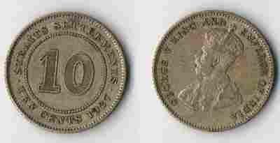 STRAITS SETTLEMENTS 1927 10 CENTS