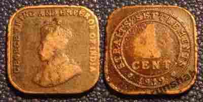 STRAITS SETTLEMENTS 1 CENT 1919r GEORGE V / 217 C