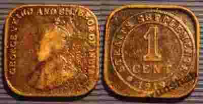 STRAITS SETTLEMENTS 1 CENT 1919r GEORGE V / 73 C