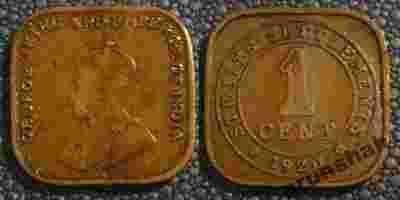STRAITS SETTLEMENTS 1 CENT 1920r GEORGE V / 162 C