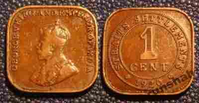 STRAITS SETTLEMENTS 1 CENT 1920r GEORGE V / 190 C