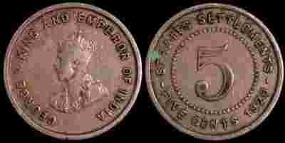 Straits Settlements, 5 Cents 1920