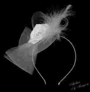 Stroik wykonany jest z crin, satyny i piór, ozdobiony kryształkami i perłami.