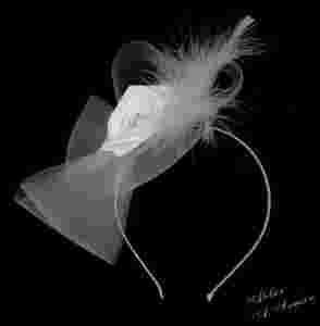Stroik wykonany jest z crin, satyny i piór, ozdobiony kryształkami i perłami.